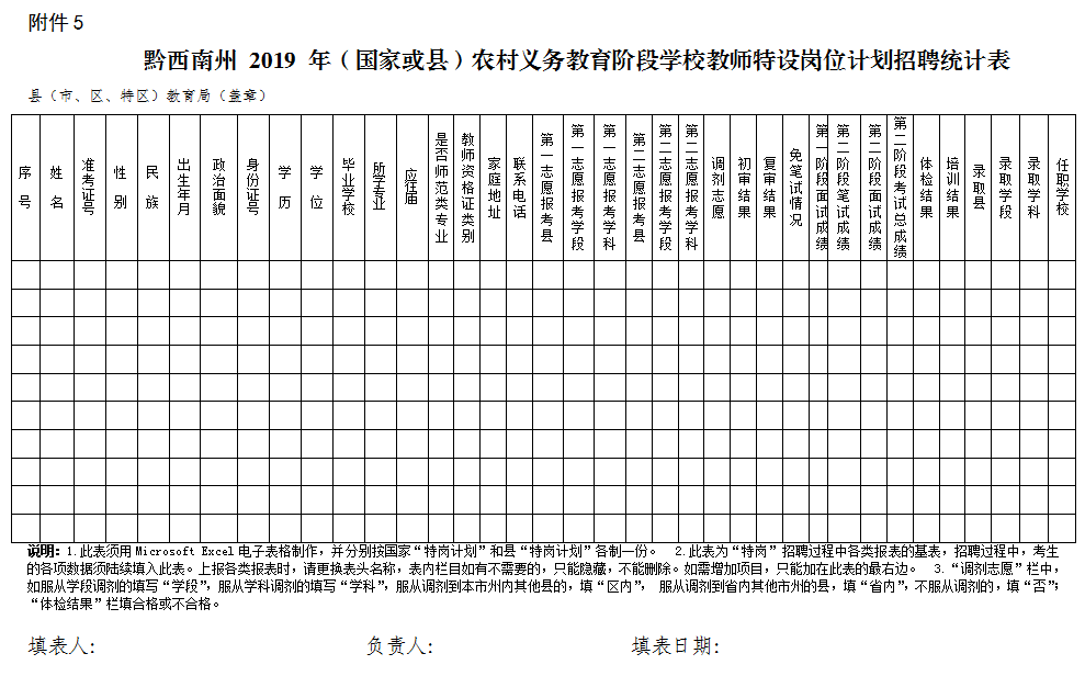縣教育局于8月16日前將第一階段和第二階段匯總審核后的錄取人員名單(含加蓋公章的文本、Excel電子表格,樣式見附件5)報州局師訓科,州審核匯總后報省教育廳教師工作處。