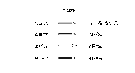 基于以上對(duì)教材、學(xué)情的分析和教學(xué)目標(biāo)的設(shè)立,感知文章主要內(nèi)容,感受作者描寫兩國(guó)使者見面時(shí)的盛大場(chǎng)景為我的教學(xué)重點(diǎn);抓住重點(diǎn)詞句,領(lǐng)會(huì)絲綢之路的重大意義為我本堂課的教學(xué)難點(diǎn)。